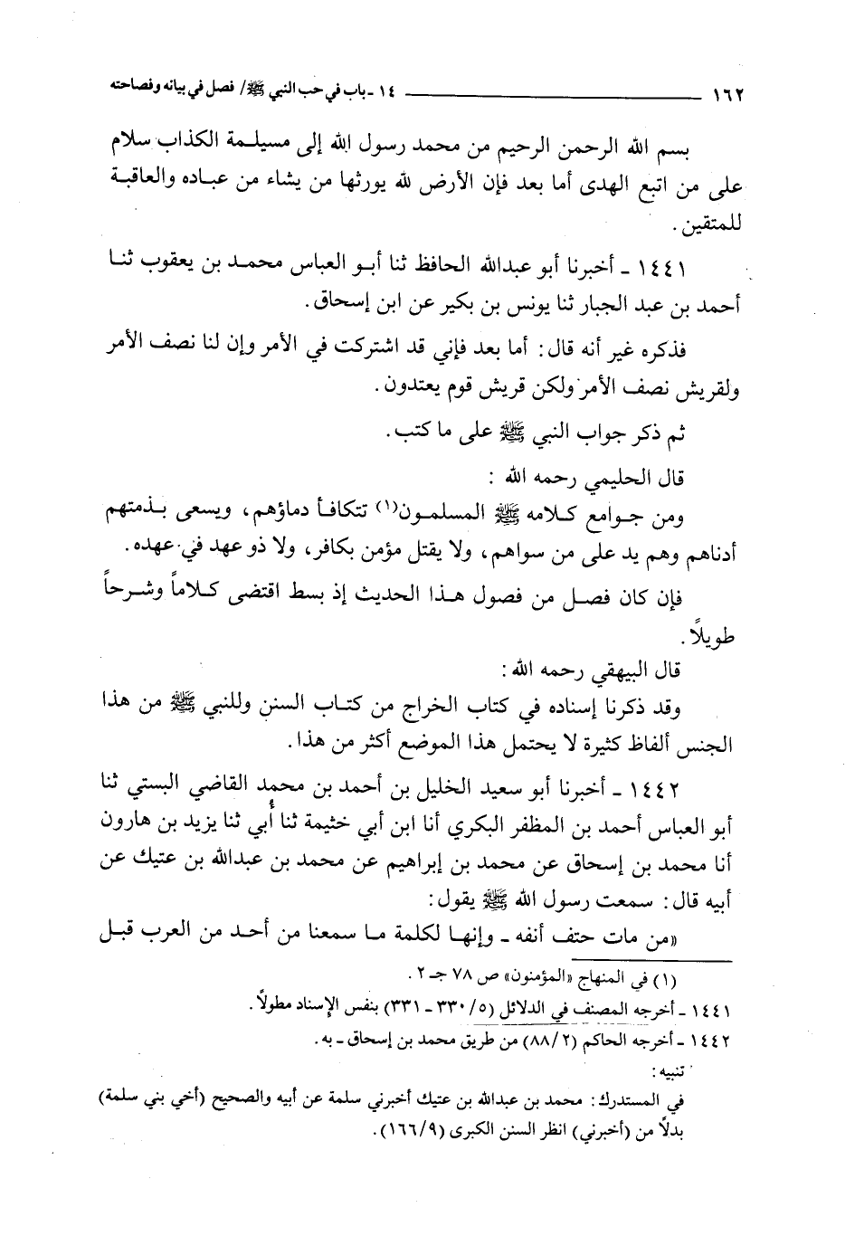 و قد ذكرنا إسناده في كتاب الخراج من كتاب السنن و للنبي صلى الله عليه و سلم من هذا الجنس ألفاظ كثيرة لا يحتمل هذا الموضع أكثر من هذا