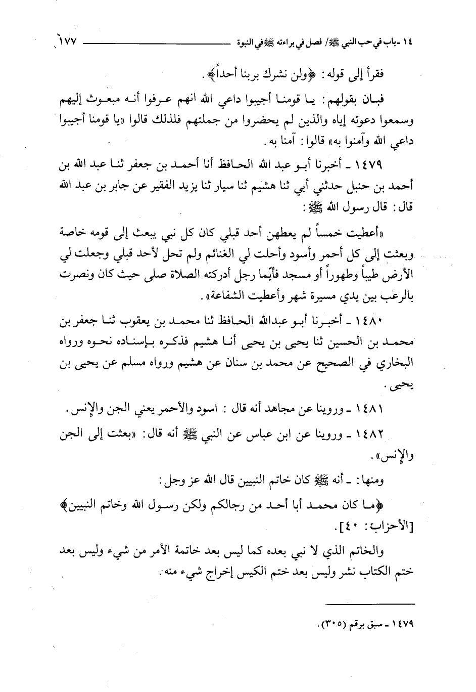 1480 - أخبرنا أبو عبد الله الحافظ ثنا محمد بن يعقوب ثنا جعفر بن محمد بن الحسين ثنا يحيى بن يحيى أنا هشيم : فذكره بإسناده نحوه و رواه البخاري في الصحيح عن محمد بن سنان عن هشيم و رواه مسلم عن يحيى بن يحيى