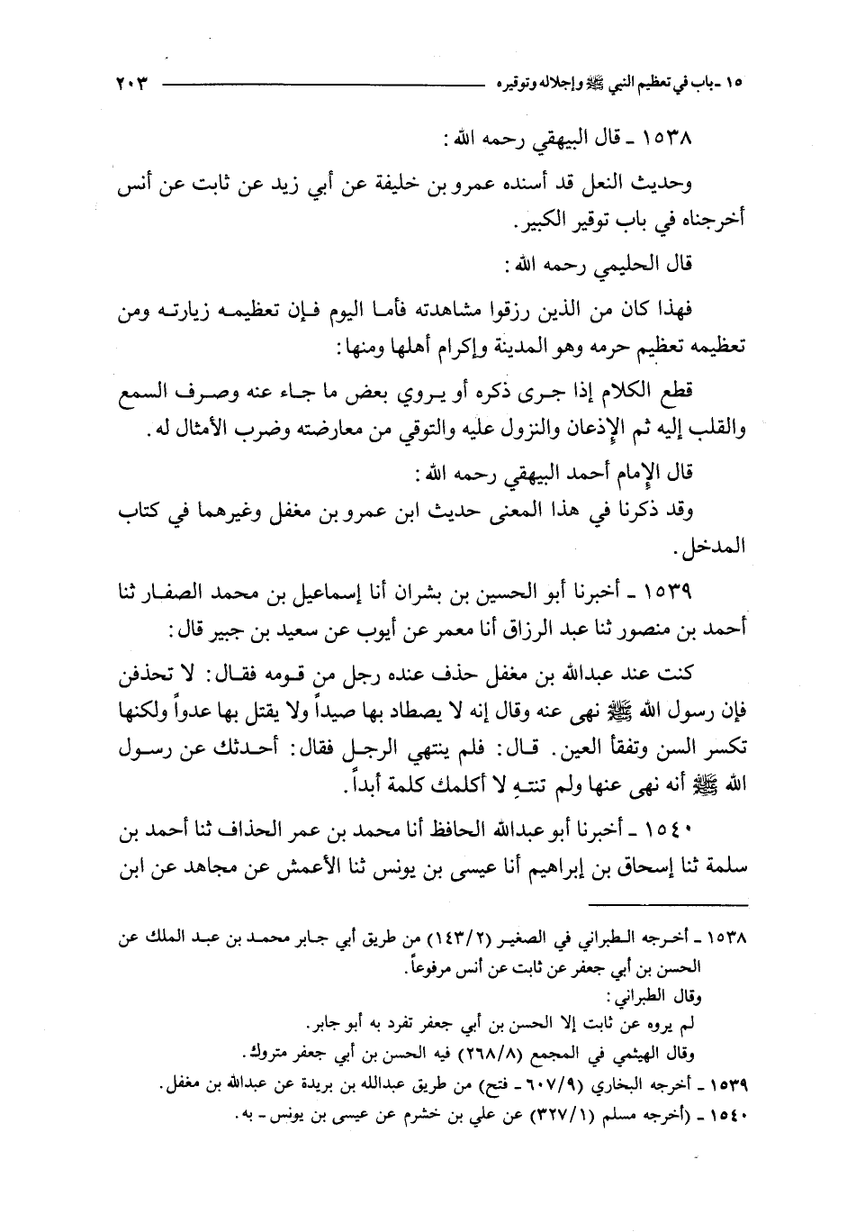 1538 - قال البيهقي رحمه الله : و حديث النعل قد أسنده عمرو بن خليفة عن أبي زيد عن ثابت عن أنس أخرجناه في باب توقير الكبير
