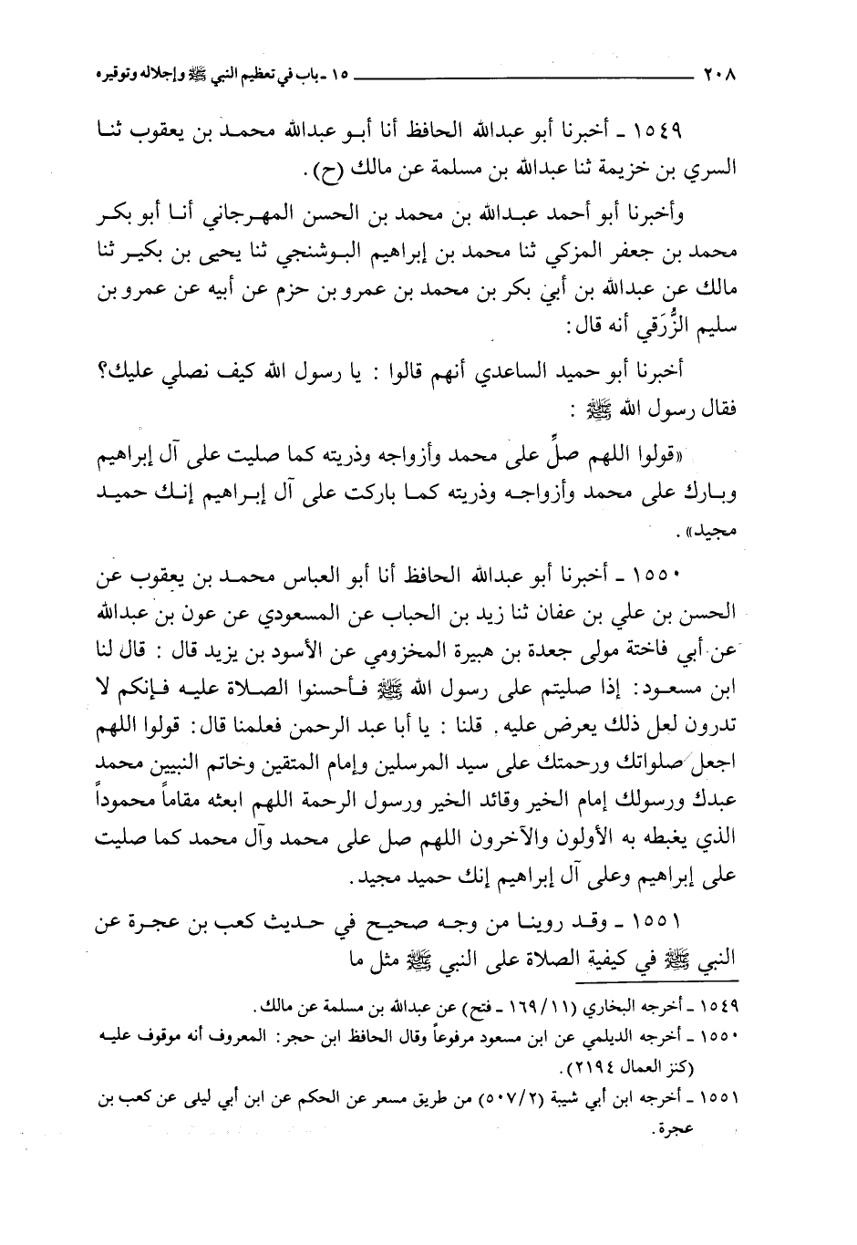 1551 - و قد روينا من وجه صحيح في حديث كعب بن عجرة : عن النبي صلى الله عليه و سلم في كيفية الصلاة على النبي صلى الله عليه و سلم مثل ما