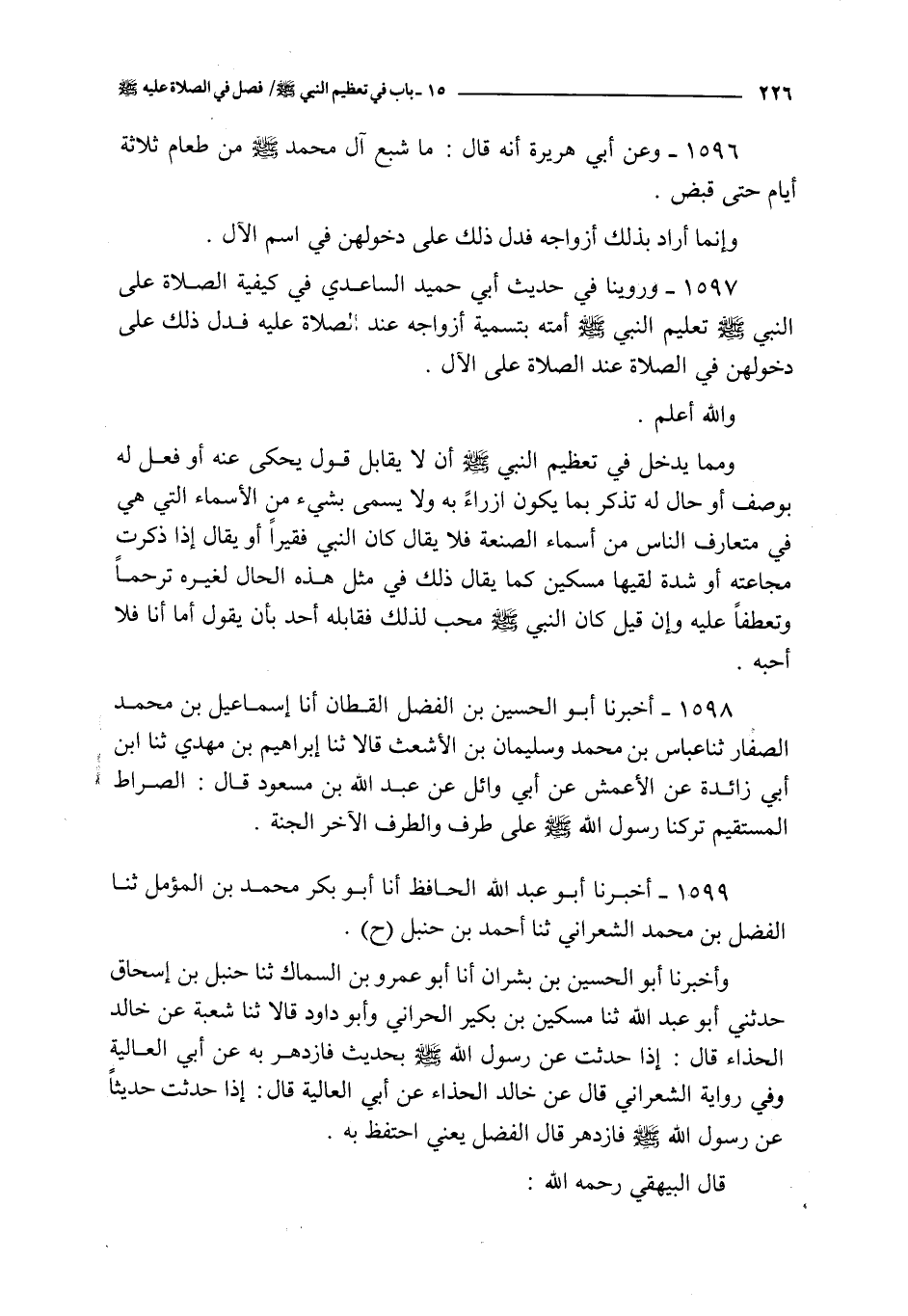 1597 - و روينا في حديث أبي حميد الساعدي : في كيفية الصلاة على النبي صلى الله عليه و سلم تعليم النبي صلى الله عليه و سلم أمته بتسمية أزواجه عند الصلاة عليه فدل ذلك على دخولهن في الصلاة عند الصلاة على الآل