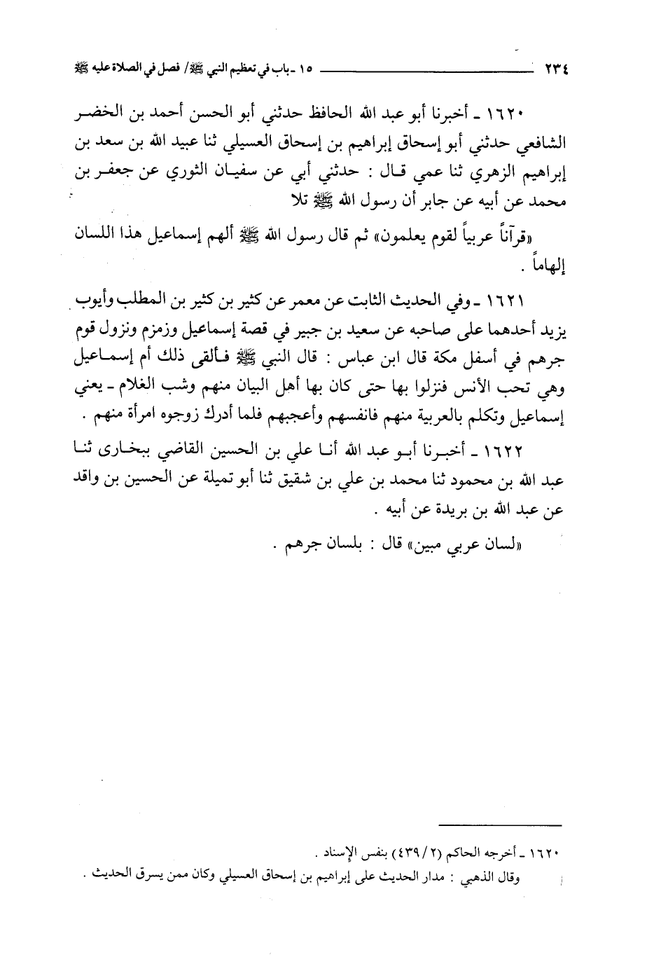 1620 - أخبرنا أبو عبد الله الحافظ حدثني أبو الحسن أحمد بن الخضر الشافعي حدثني أبو إسحاق إبراهيم بن إسحاق العسيلي ثنا عبيد الله بن سعد بن إبراهيم الزهري ثنا عمي قال : حدثني أبي عن سفيان الثوري عن جعفر بن محمد عن أبيه عن جابر : أن رسول الله صلى الله عليه و سلم تلا
