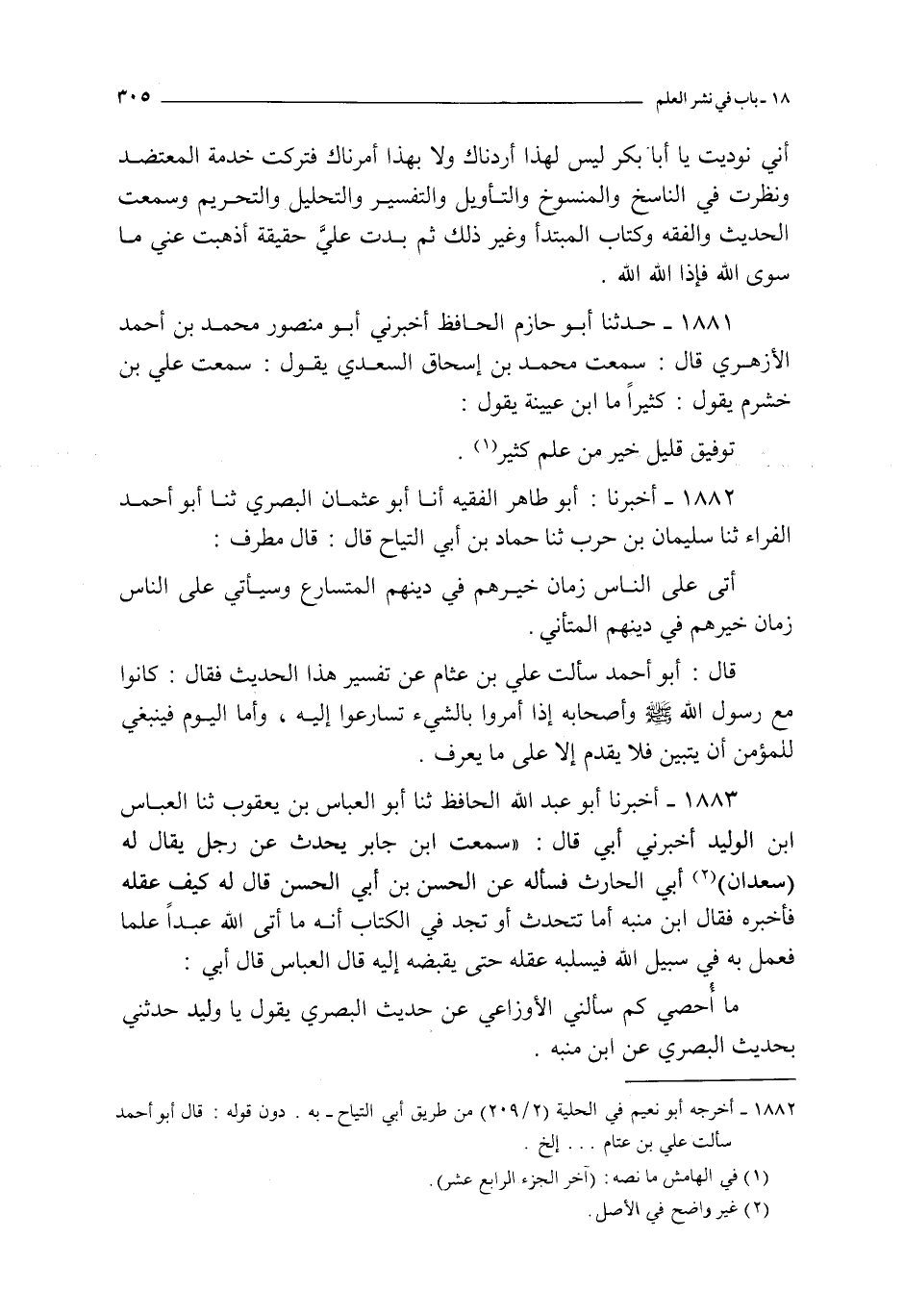 1881 - حدثنا أبو حازم الحافظ أخبرني أبو منصور محمد بن أحمد الأزهري قال : سمعت محمد بن إسحاق السعدي يقول : سمعت علي بن خشرم يقول : كثيرا ما ابن عيينة يقول : توفيق قليل خير من علم كثير