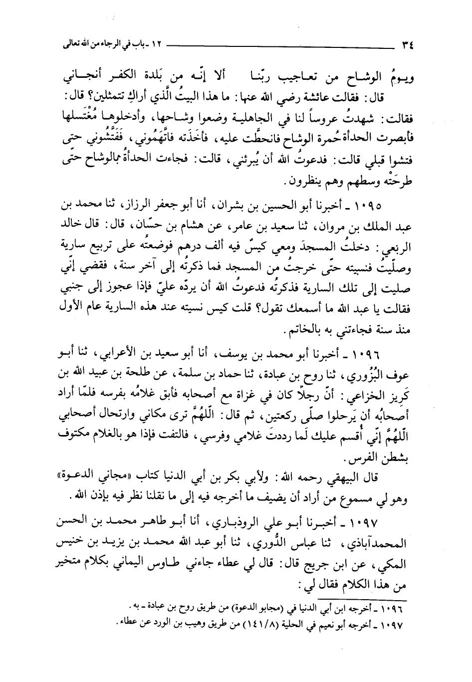 1097 - أخبرنا أبو علي الروذباري أنا أبو طاهر محمد بن الحسن المحمدآباذي ثنا عباس الدوري ثنا أبو عبد الله محمد بن يزيد بن خنيس المكي عن ابن جريج قال : قال لي عطاء جاءني طاوس اليماني بكلام متخير من هذا الكلام فقال لي :