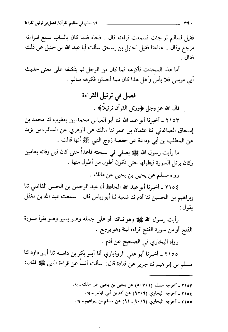 فصل في ترتيل القراءة ـ قال الله عز و جل { و رتل القرآن ترتيلا }