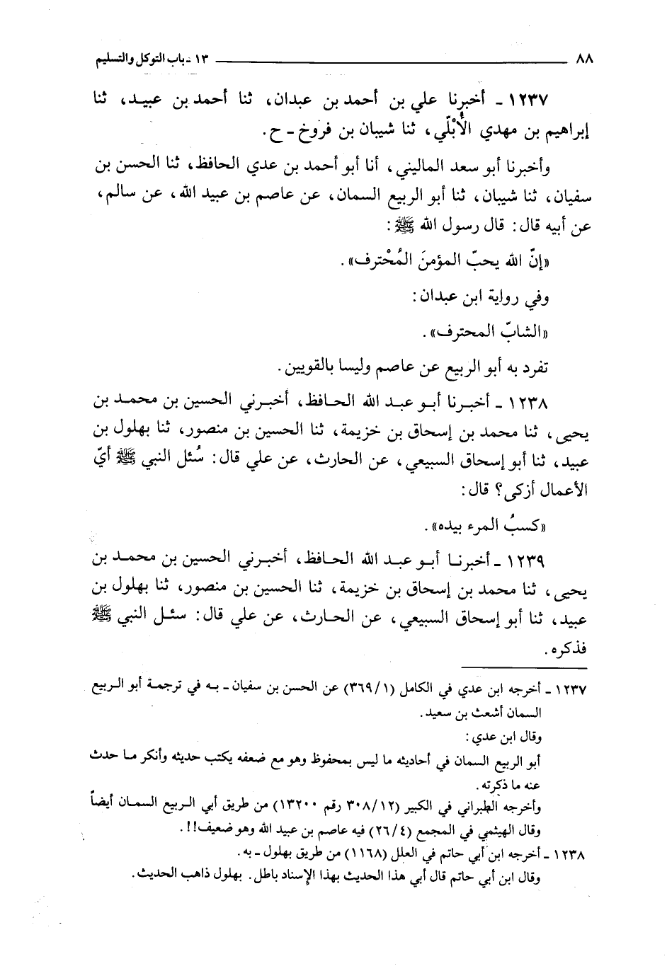 1238 - أخبرنا أبو عبد الله الحافظ أخبرني الحسين بن محمد بن يحيى ثنا محمد بن إسحاق بن خزيمة ثنا الحسين بن منصور ثنا بهلول بن عبيد ثنا أبو إسحاق السبيعي عن الحارث عن علي قال : سئل النبي صلى الله عليه و سلم أي الأعمال أزكي ؟ قال :