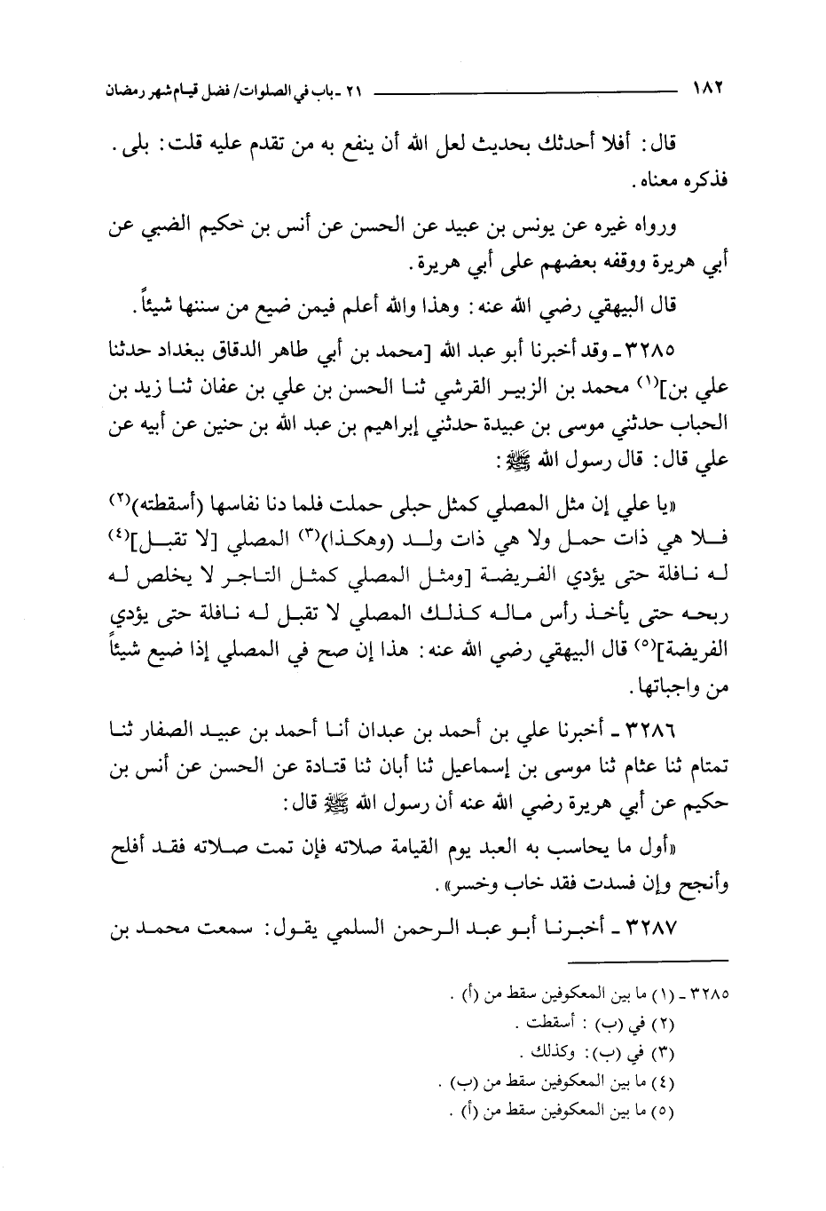 يا علي إن مثل المصلي كمثل حبلى حملت فلما دنا نفاسها أسقطته فلا هي ذات حمل و لا هي ذات ولد و هكذا المصلي لا تقبل له نافلة حتى يؤدي الفريضة و مثل المصلي كمثل التاجر لا يخلص له ربحه حتى يأخذ رأس ماله كذلك المصلي لا تقبل له نافلة حتى يؤدي الفريضة قال البيهقي رضي الله عنه : هذا إن صح في المصلي إذا ضيع شيئا من واجباتها
