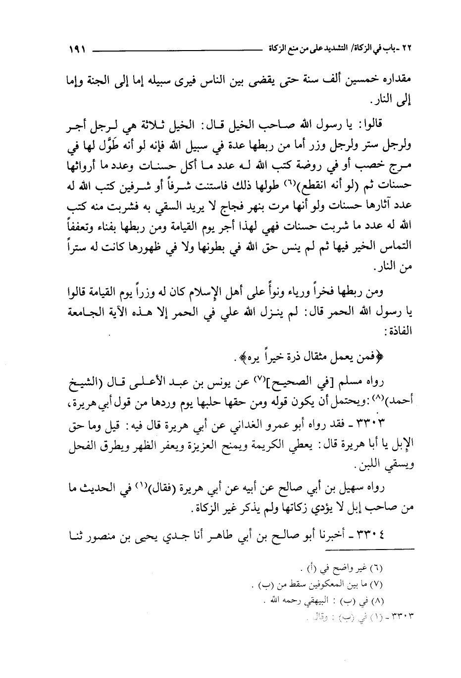 3303 - فقد رواه أبو عمرو الغداني عن أبي هريرة قال فيه : قيل و ما حق الإبل يا أبا هريرة قال : يعطي الكريمة و يمنح العزيزة و يعفر الظهر و يطرق الفحل و يسقي اللبن