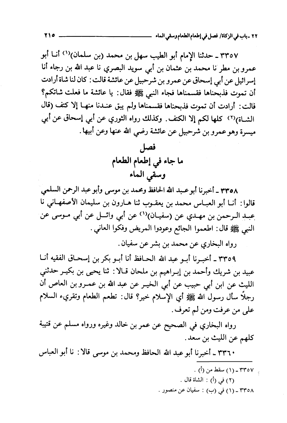 فصل ما جاء في إطعام الطعام و سقي الماء