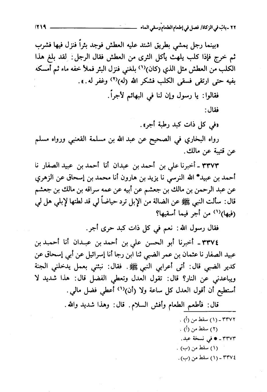 3373 - أخبرنا علي بن أحمد بن عبدان أنا أحمد بن عبيد الصفار نا أحمد بن عبيد الله النرسي نا يزيد بن هارون أنا محمد بن إسحاق عن الزهري عن عبد الرحمن بن مالك بن جعشم عن أبيه عن عمه سراقه بن مالك بن جعشم قال : سألت النبي صلى الله عليه و سلم عن الضالة من الإبل ترد حياضا لي قد لطتها لإبلي هل لي فيها من أجر فيما أسقيها ؟