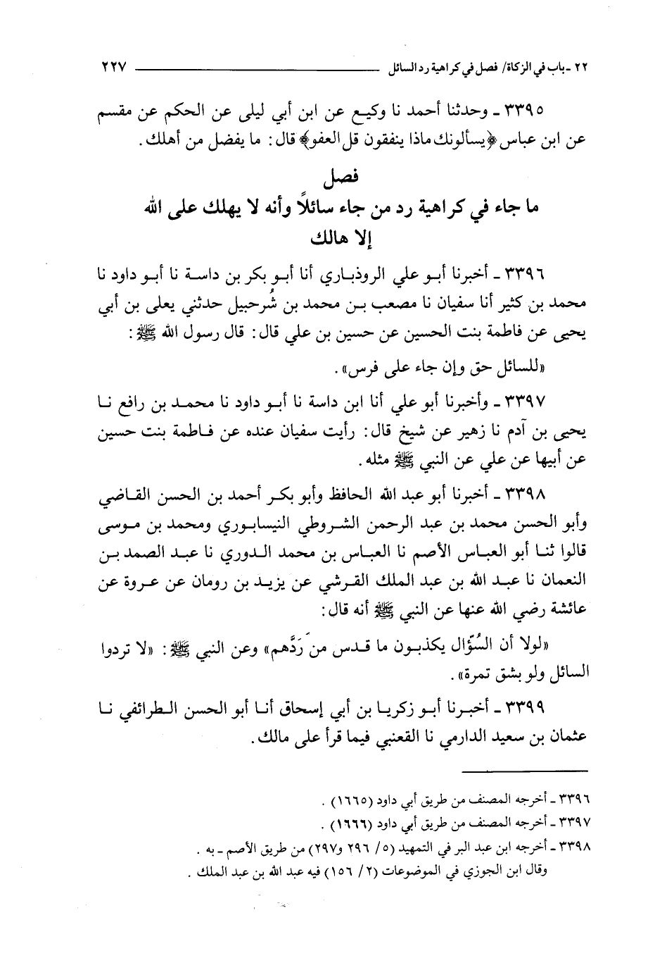فصل ما جاء في كراهية رد من جاء سائلا و أنه لا يهلك على الله إلا هالك