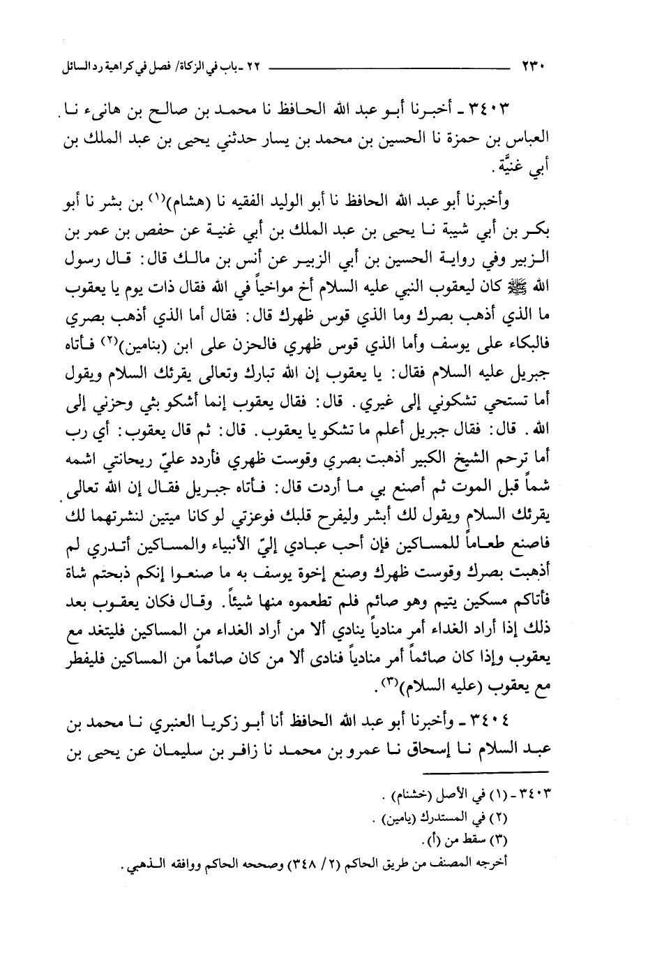 3404 - و أخبرنا أبو عبد الله الحافظ أنا أبو زكريا العنبري نا محمد بن عبد السلام نا إسحاق نا عمرو بن محمد نا زافر بن سليمان عن يحيى بن عبد الملك عن أنس بن مالك : عن رسول الله صلى الله عليه و سلم قال :