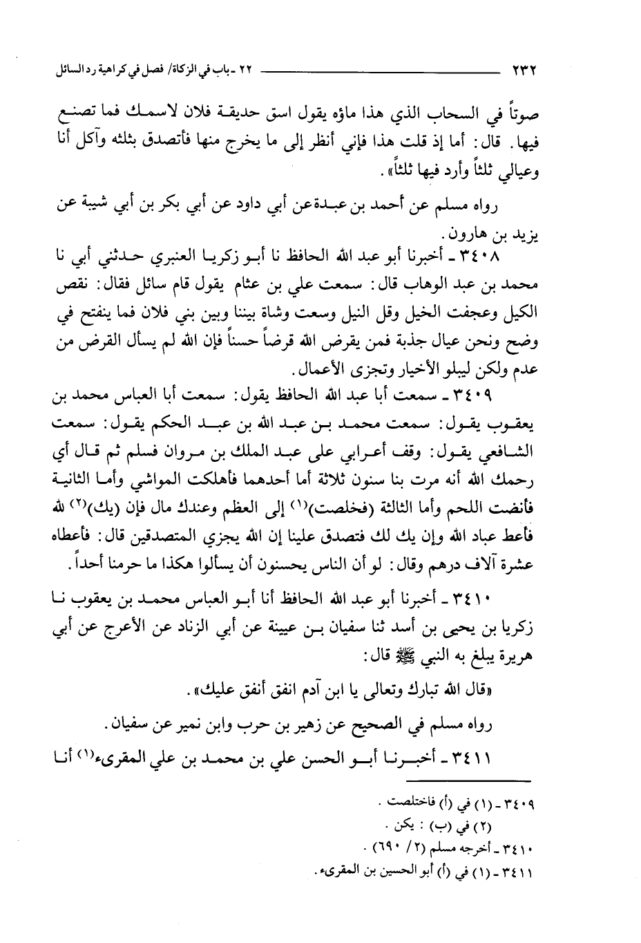3410 - أخبرنا أبو عبد الله الحافظ أنا أبو العباس محمد بن يعقوب نا زكريا بن يحيى بن أسد ثنا سفيان بن عيينة عن أبي الزناد عن الأعرج عن أبي هريرة يبلغ به النبي صلى الله عليه و سلم قال : قال الله تبارك و تعالى يا ابن آدم انفق أنفق عليك