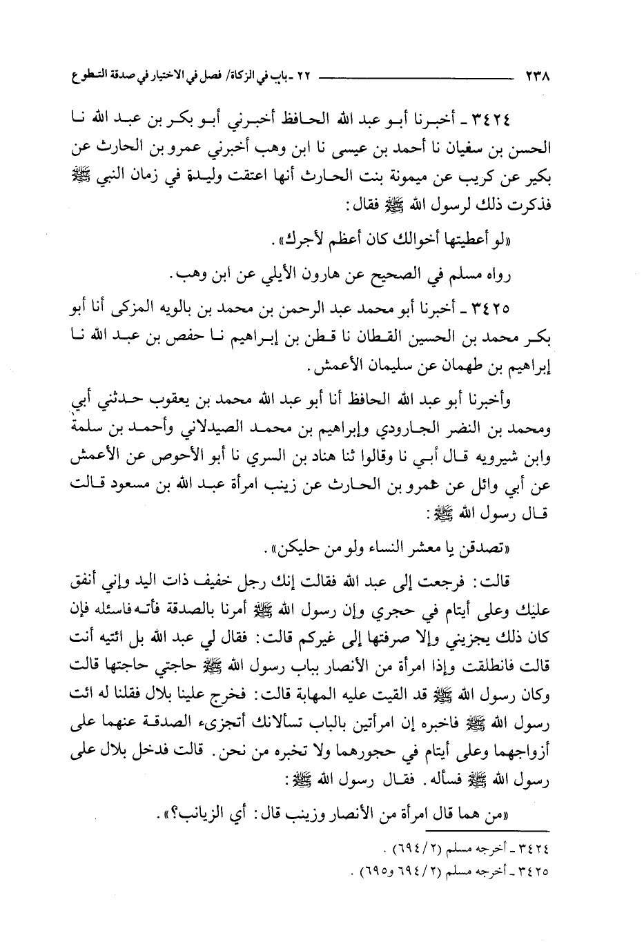 و أخبرنا أبو عبد الله الحافظ أنا أبو عبد الله محمد بن يعقوب حدثني أبي و محمد بن النضر الجارودي و إبراهيم بن محمد الصيدلاني و أحمد بن سلمة و ابن شيرويه قال أبي نا و قالوا ثنا هناد بن السري نا أبو الأحوص عن الأعمش عن أبي وائل عن عمرو بن الحارث عن زينب امرأة عبد الله بن مسعود قالت : قال رسول الله صلى الله عليه و سلم :