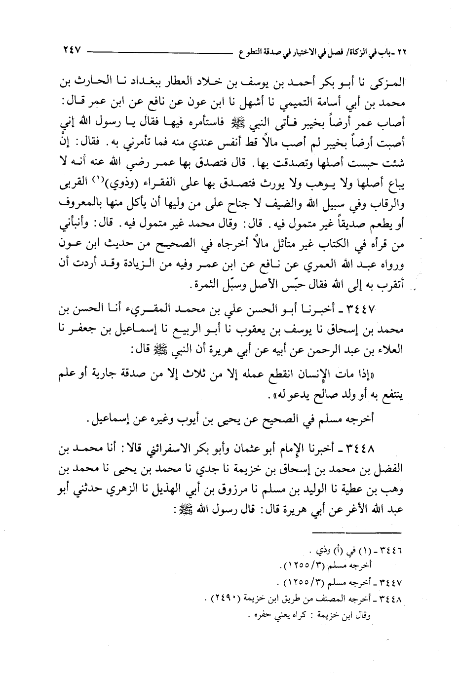 3448 - أخبرنا الإمام أبو عثمان و أبو بكر الاسفرائني قالا : أنا محمد بن الفضل بن محمد بن إسحاق بن خزيمة نا جدي نا محمد بن يحيى نا محمد بن وهب بن عطية نا الوليد بن مسلم نا مرزوق بن أبي الهذيل نا الزهري حدثني أبو عبد الله الأغر عن أبي هريرة قال : قال رسول الله صلى الله عليه و سلم :