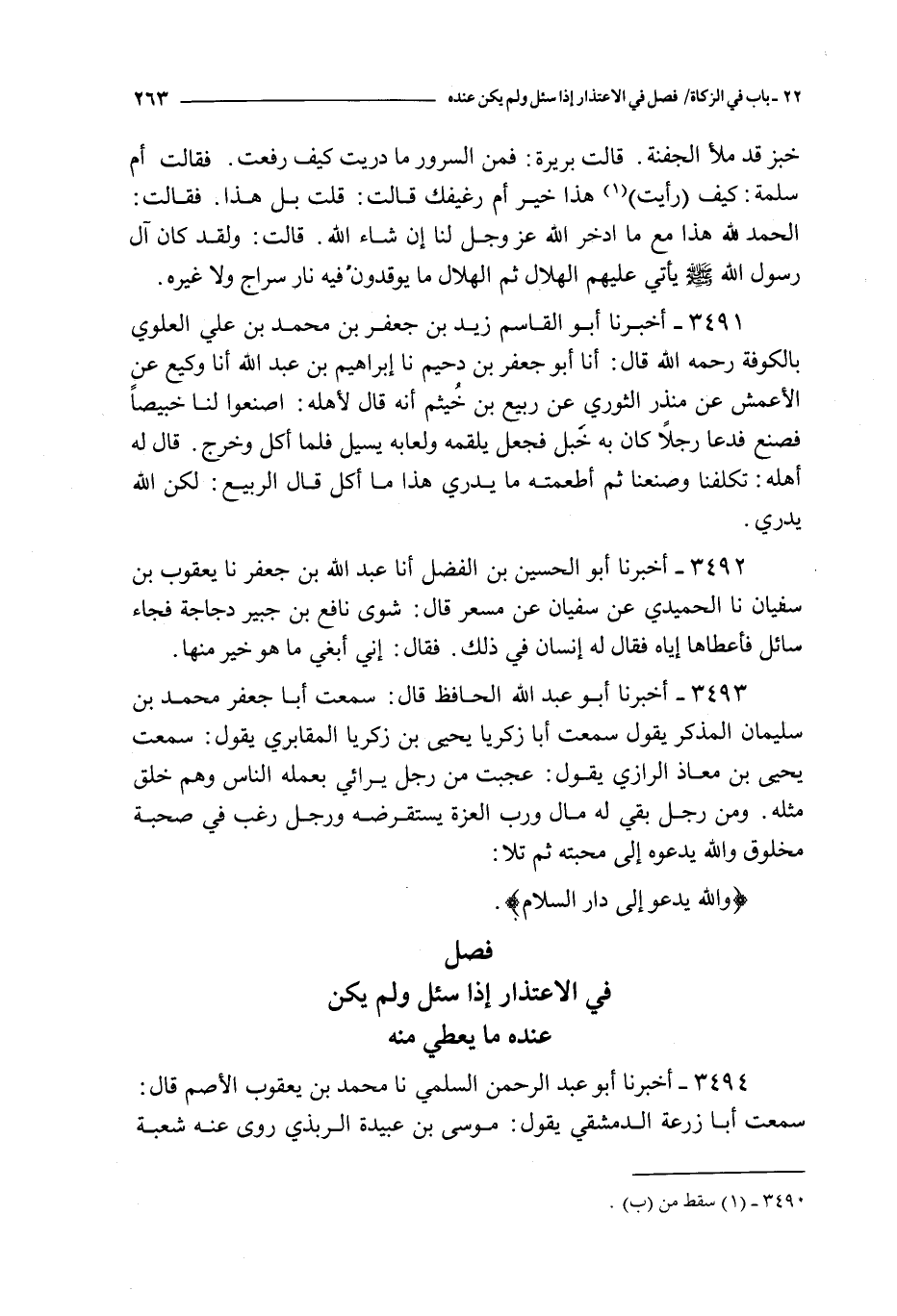 3492 - أخبرنا أبو الحسين بن الفضل أنا عبد الله بن جعفر نا يعقوب بن سفيان نا الحميدي عن سفيان عن مسعر قال : شوى نافع بن جبير دجاجة فجاء سائل فأعطاه إياه فقال له إنسان في ذلك فقال : إني أبغي ما هو خير منها