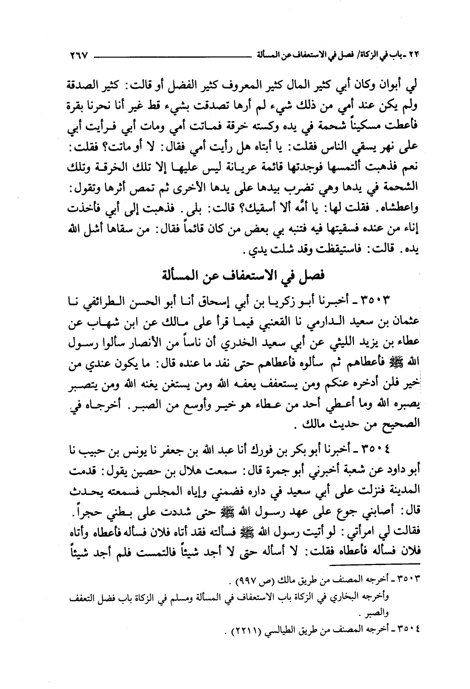 3503 - أخبرنا أبو زكريا بن أبي إسحاق أنا أبو الحسن الطرائفي نا عثمان بن سعيد الدارمي نا القعنبي فيما قرأ على مالك عن ابن شهاب عن عطاء بن يزيد الليثي عن أبي سعيد الخدري : أن ناسا من الأنصار سألوا رسول الله صلى الله عليه و سلم فأعطاهم ثم سألوه فأعطاهم حتى نفد ما عنده قال : ما يكون عندي من خير فلن أدخره عنكم و من يستعفف يعفه الله و من يستغن يغنه الله و من يتصبر يصبره الله و ما أعطي أحد من عطاء هو خير و أوسع من الصبر أخرجاه في الصحيح من حديث مالك