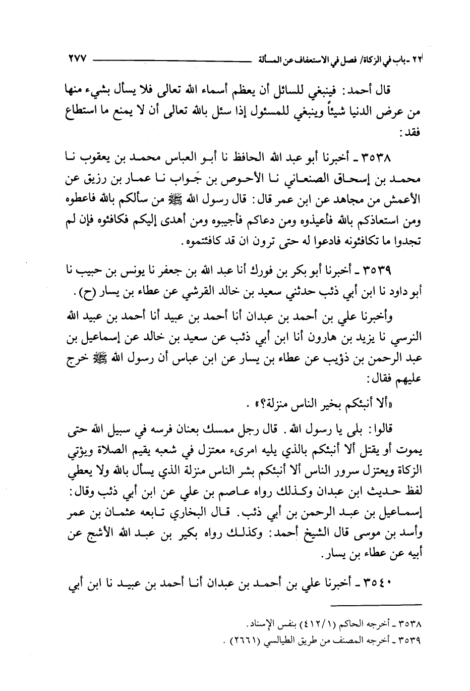 3538 - أخبرنا أبو عبد الله الحافظ نا أبو العباس محمد بن يعقوب نا محمد بن إسحاق الصنعاني نا الأحوص بن جواب نا عمار بن رزيق عن الأعمش من مجاهد عن ابن عمر قال : قال رسول الله صلى الله عليه و سلم من سألكم بالله فاعطوه و من استعاذكم بالله فأعيذوه و من دعاكم فأجيبوه و من أهدى إليكم فكافئوه فإن لم تجدوا ما تكافئونه فادعوا له حتى ترون أن قد كافئتموه