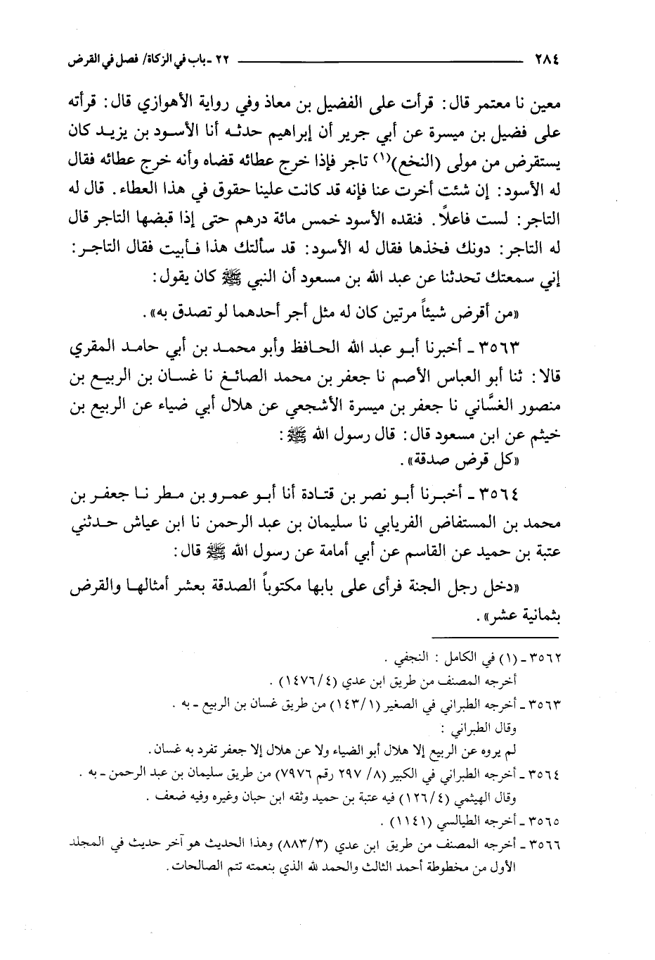 3564 - أخبرنا أبو نصر بن قتادة أنا أبو عمرو بن مطر نا جعفر بن محمد بن المستفاض الفريابي نا سليمان بن عبد الرحمن نا ابن عياش حدثني عتبة بن حميد عن القاسم عن أبي أمامة : عن رسول الله صلى الله عليه و سلم قال :