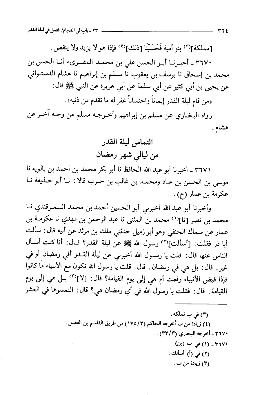 3671 - أخبرنا أبو عبد الله الحافظ نا أبو بكر محمد بن أحمد بن بالويه نا موسى بن الحسن بن عباد و محمد بن غالب بن حرب قالا : نا أبو حذيفة نا عكرمة بن عمار ح