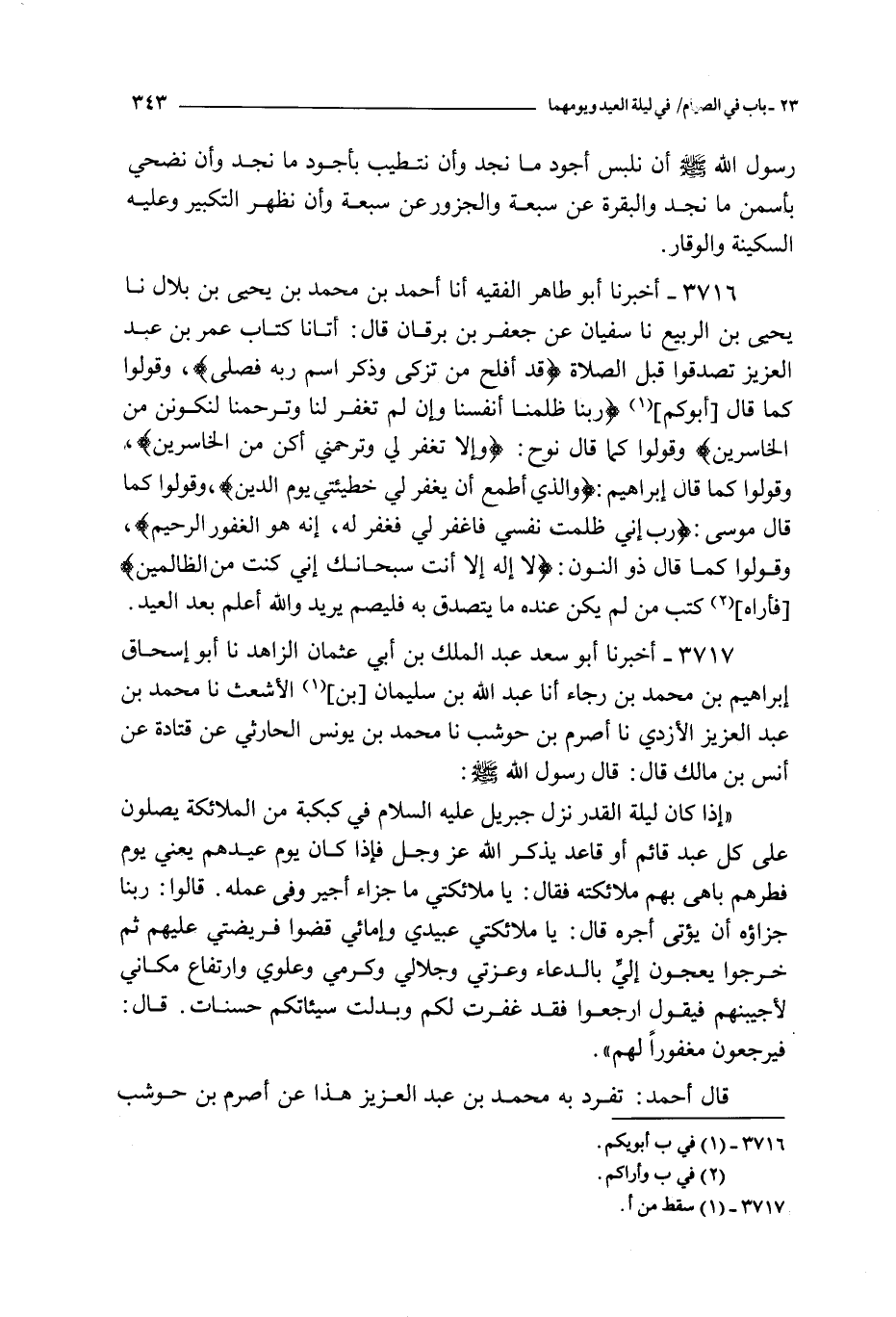 قال أحمد : تفرد به محمد بن عبد العزيز هذا عن أصرم بن حوشب الهمداني و قد رويناه في الحديث الطويل في ليلة القدر