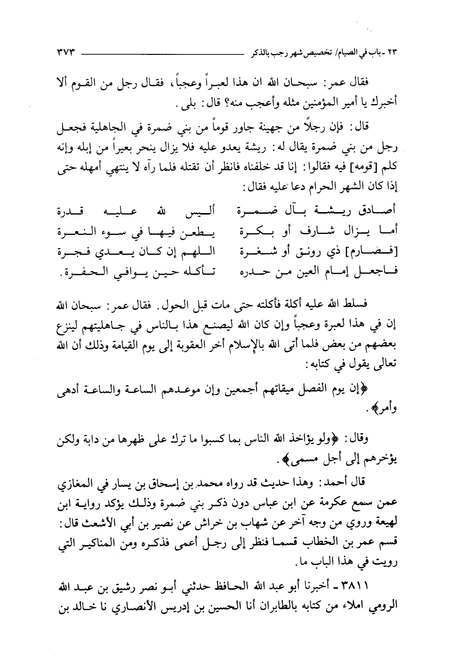 3811 - أخبرنا أبو عبد الله الحافظ حدثني أبو نصر رشيق بن عبد الله الرومي املاء من كتابه بالطابران أنا الحسين بن إدريس الأنصاري نا خالد بن الهياج عن أبيه عن سليمان التيمي عن أبي عثمان عن سلمان الفارسي قال : قال رسول الله صلى الله عليه و سلم :
