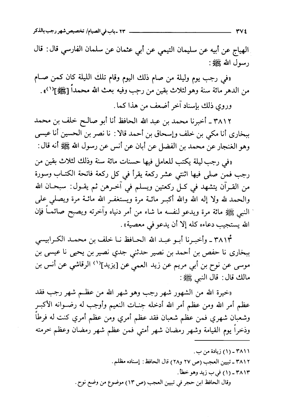 3812 - أخبرنا محمد بن عبد الله الحافظ أنا أبو صالح خلف بن محمد ببخارى أنا مكي بن خلف و إسحاق بن أحمد قالا : نا نصر بن الحسين أنا عيسى و هو الغنجار عن محمد بن الفضل عن أبان عن أنس : عن رسول الله صلى الله عليه و سلم أنه قال :