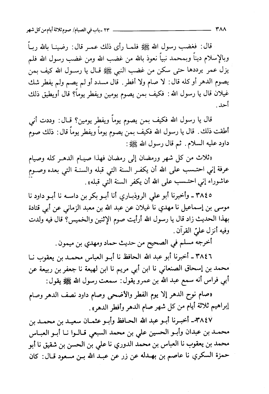 3847 - أخبرنا أبو عبد الله الحافظ و أبو عثمان سعيد بن محمد بن محمد بن عبدان و أبو الحسين علي بن محمد السبعي قالوا نا أبو العباس محمد بن يعقوب نا العباس بن محمد الدوري نا علي بن الحسن بن شقيق نا أبو حمزة السكري نا عاصم بن بهدله عن زر عن عبد الله بن مسعود قال : كان رسول الله صلى الله عليه و سلم يصوم ثلاثا من غرة كل شهر و قل ما كان يفوته صوم يوم الجمعة