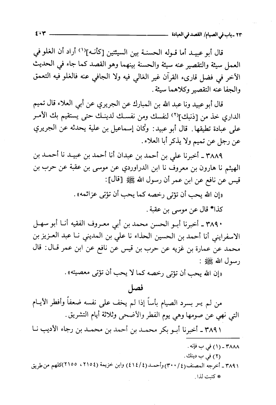 3889 - أخبرنا علي بن أحمد بن عبدان أنا أحمد بن عبيد نا أحمد بن الهيثم نا هارون بن معروف نا ابن الدراوردي عن موسى بن عقبة عن حرب بن قيس عن نافع عن ابن عمر : أن رسول الله صلى الله عليه و سلم قال :