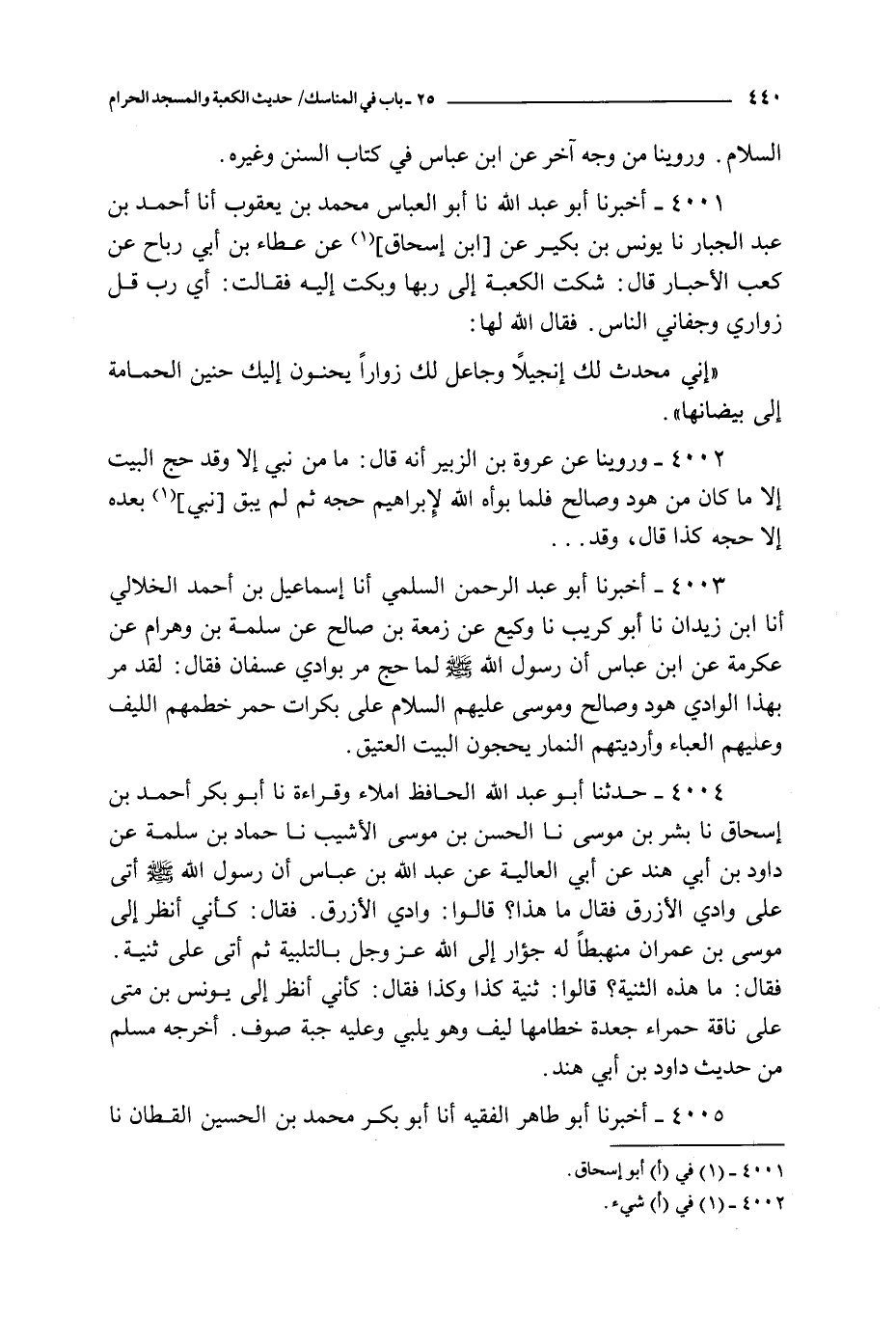 4002 - و روينا عن عروة بن الزبير أنه قال : ما من نبي إلا و قد حج البيت إلا ما كان من هود و صالح فلما بوأه الله لإبراهيم حجه ثم لم يبق نبي بعده إلا حجه كذا قال و قد