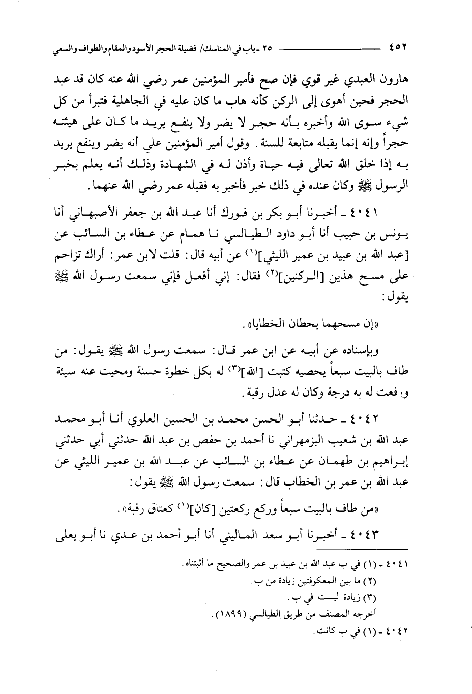 4041 - أخبرنا أبو بكر بن فورك أنا عبد الله بن جعفر الأصبهاني أنا يونس بن حبيب أنا أبو داود الطيالسي نا همام عن عطاء بن السائب عن عبد الله بن عبيد بن عمير الليثي عن أبيه قال : قلت لابن عمر : أراك تزاحم على مسح هذين الركنين فقال : إني أفعل فإني سمعت رسول الله صلى الله عليه و سلم يقول :