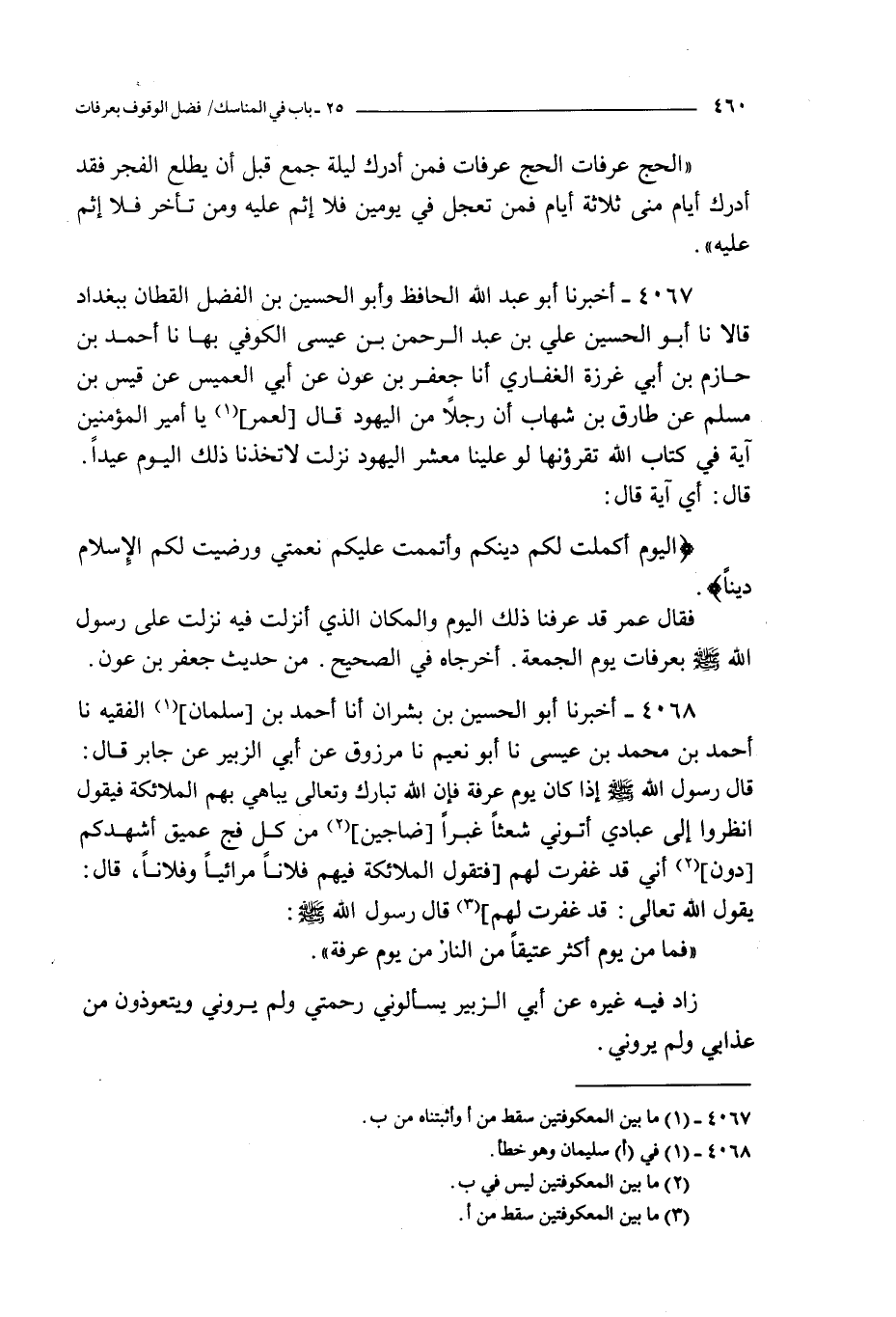 4068 - أخبرنا أبو الحسين بن بشران أنا أحمد بن سلمان الفقيه نا أحمد بن محمد بن عيسى نا أبو نعيم نا مرزوق عن أبي الزبير عن جابر قال : قال رسول الله صلى الله عليه و سلم إذا كان يوم عرفة فإن الله تبارك و تعالى يباهي بهم الملائكة فيقول انظروا إلى عبادي أتوني شعثا غبرا ضاجين من كل فج عميق أشهدكم دون أني قد غفرت لهم فتقول الملائكة فيهم فلانا مرائيا و فلانا قال : يقول الله تعالى : قد غفرت لهم قال رسول الله صلى الله عليه و سلم :