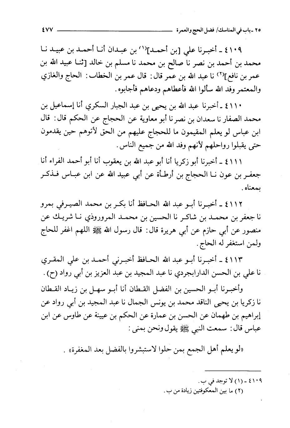 4111 - أخبرنا أبو زكريا أنا أبو عبد الله بن يعقوب أنا أبو أحمد الفراء أنا جعفر بن عون نا الحجاج بن أرطأة عن أبي عبيد الله عن ابن عباس : فذكر بمعناه
