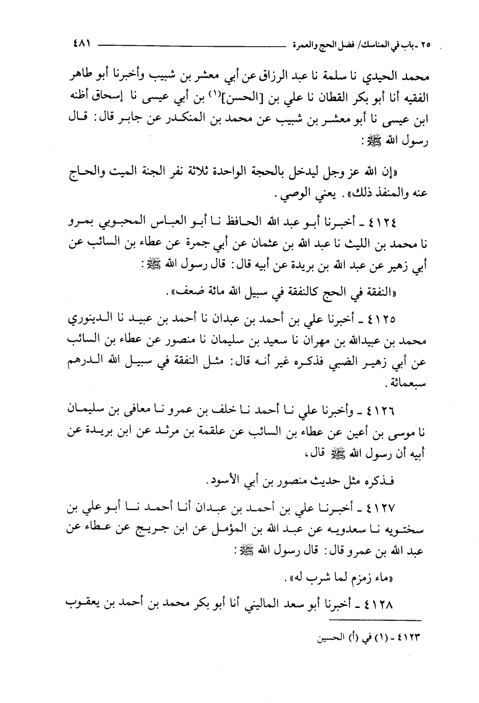 4125 - أخبرنا علي بن أحمد بن عبدان نا أحمد بن عبيد نا الدينوري محمد بن عبيد الله بن مهران نا سعيد بن سليمان نا منصور عن عطاء بن السائب عن أبي زهير الضبي : فذكره غير أنه قال : مثل النفقة في سبيل الله الدرهم سبعمائة