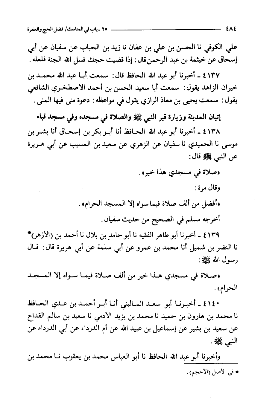 4138 - أخبرنا أبو عبد الله الحافظ أنا أبو بكر بن إسحاق أنا بشر بن موسى نا الحميدي نا سفيان عن الزهري عن سعيد بن المسيب عن أبي هريرة : عن النبي صلى الله عليه و سلم قال :