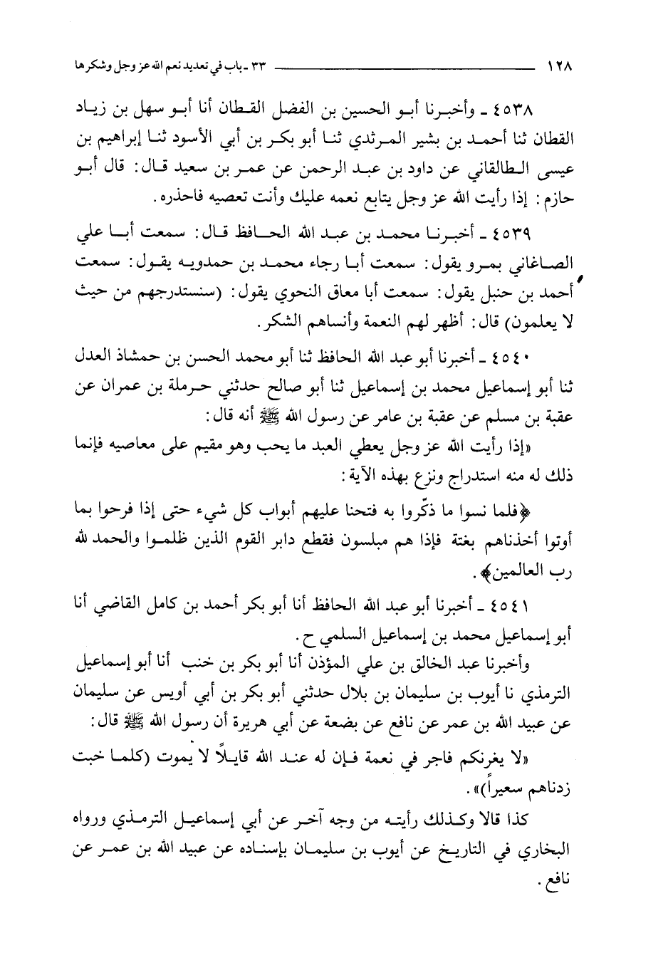 4539 - أخبرنا محمد بن عبد الله الحافظ قال : سمعت أبا علي الصاغاني بمرو يقول : سمعت أبا رجاء محمد بن حمدويه يقول : سمعت أحمد بن حنبل يقول : سمعت أبا معاق النحوي يقول : سنستدرجهم من حيث لا يعلمون قال : أظهر لهم النعمة و أنساهم الشكر