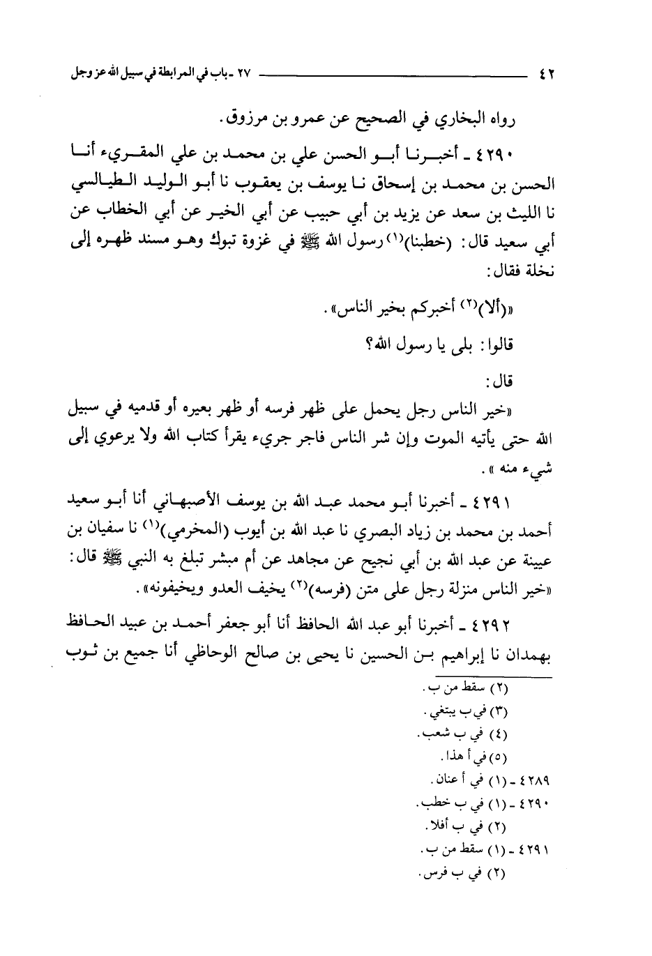 خير الناس منزلة رجل على متن فرسه يخيف العدو و يخيفونه