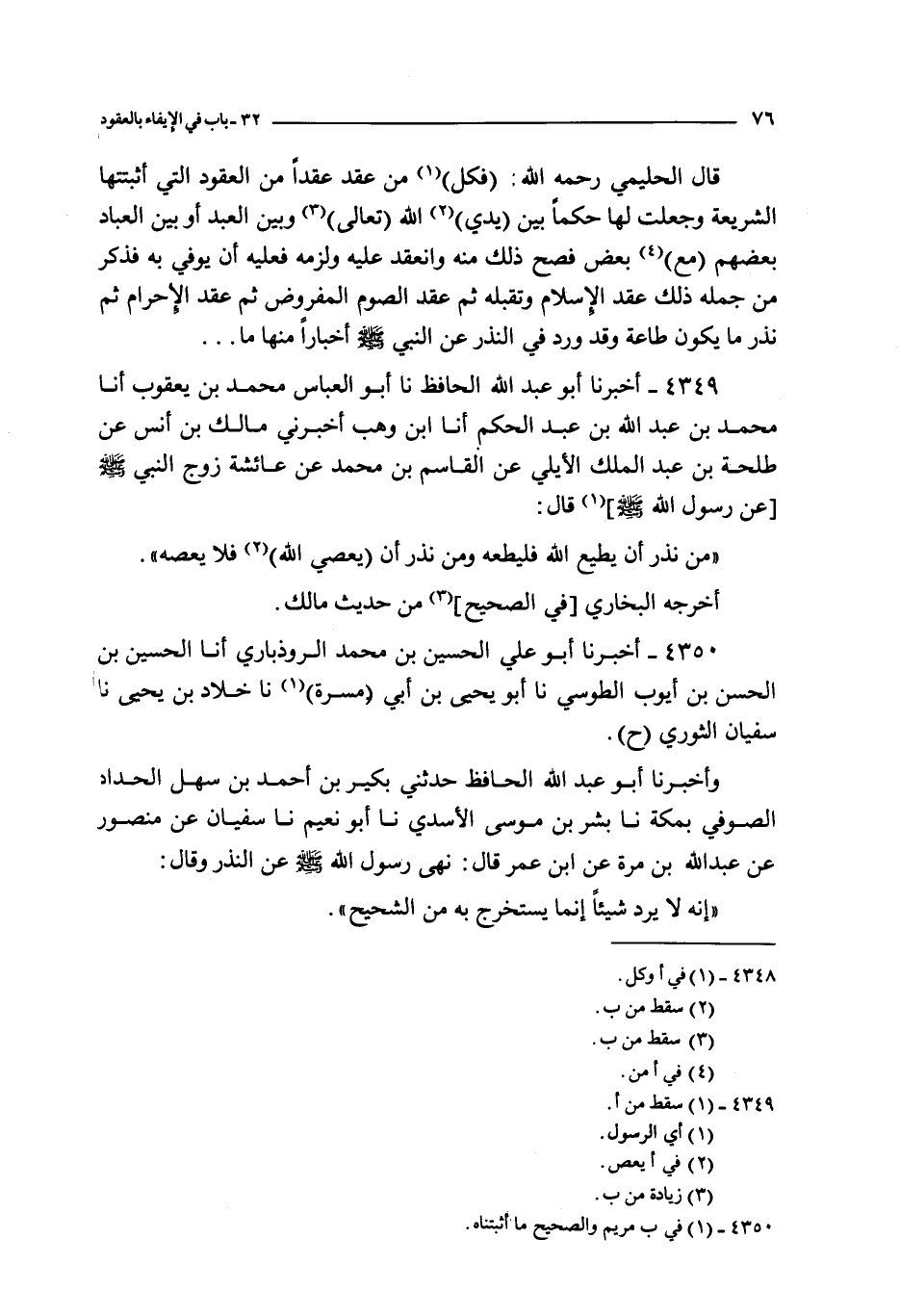 و أخبرنا أبو عبد الله الحافظ حدثني بكير بن أحمد بن سهل الحداد الصوفي بمكة نا بشر بن موسى الأسدي نا أبو نعيم نا سفيان عن منصور عن عبد الله بن مرة عن ابن عمر قال : نهى رسول الله صلى الله عليه و سلم عن النذر و قال :