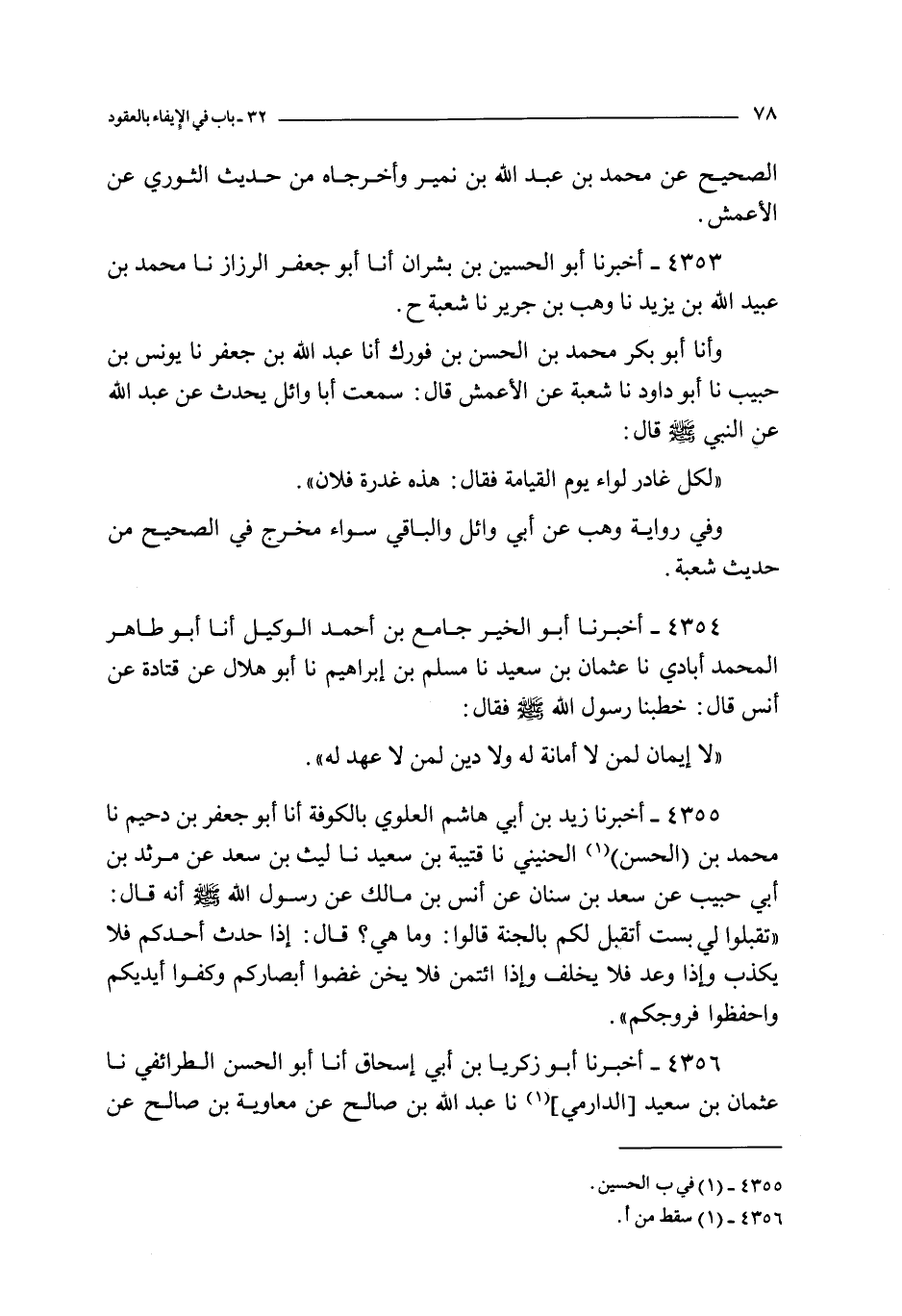 4353 - أخبرنا أبو الحسين بن بشران أنا أبو جعفر الرزاز نا محمد بن عبيد الله بن يزيد نا وهب بن جرير نا شعبة ح
