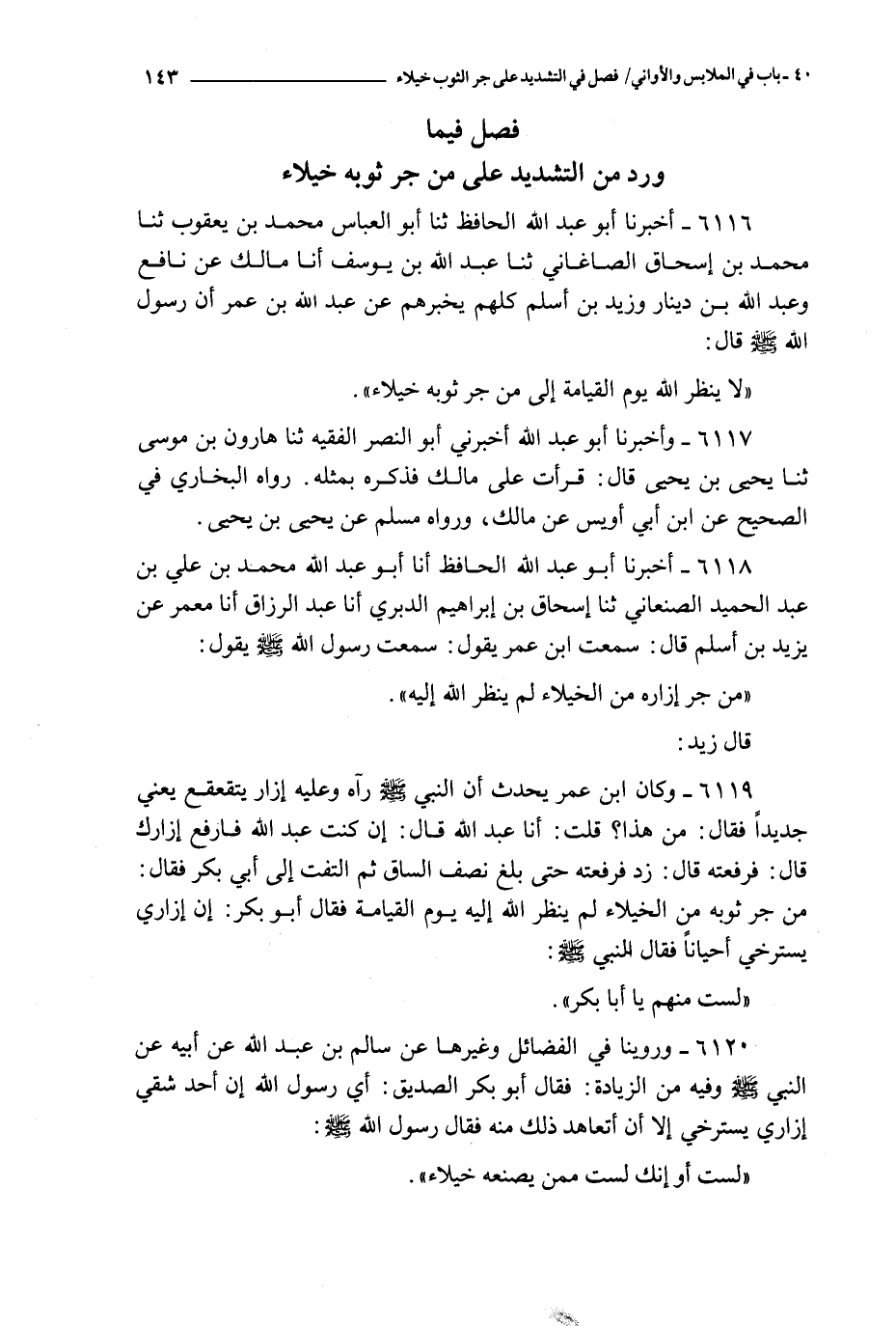 فصل فيما ورد في التشديد على من جر ثوبه خيلاء