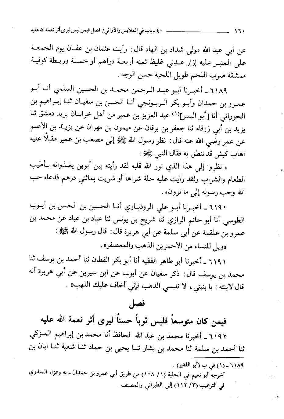 فصل فيمن كان متوسعا ثوبا حسنا ليرى أثر نعمة الله عليه