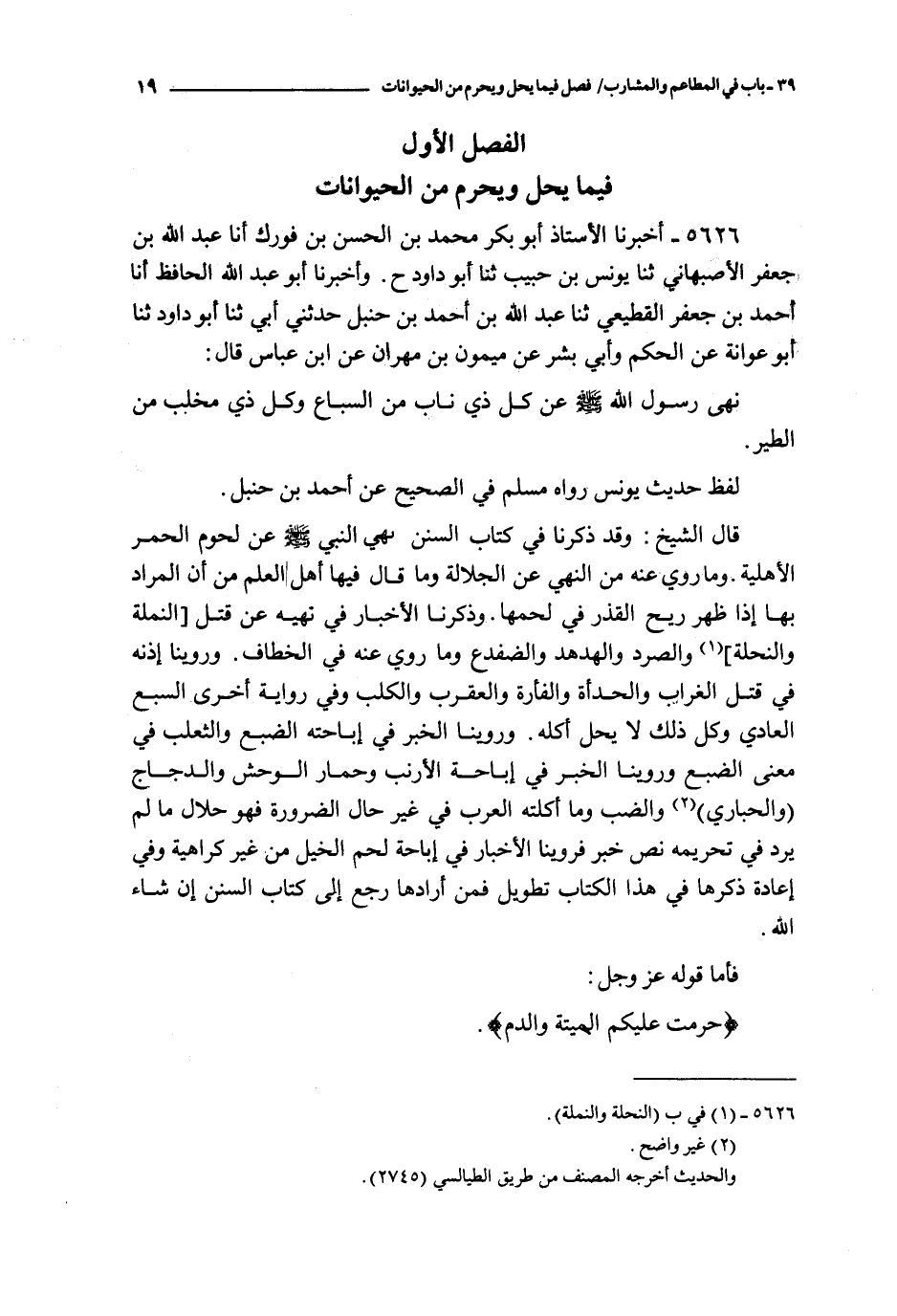 الفصل الأول فيما يحل ويحرم من الحيوانات