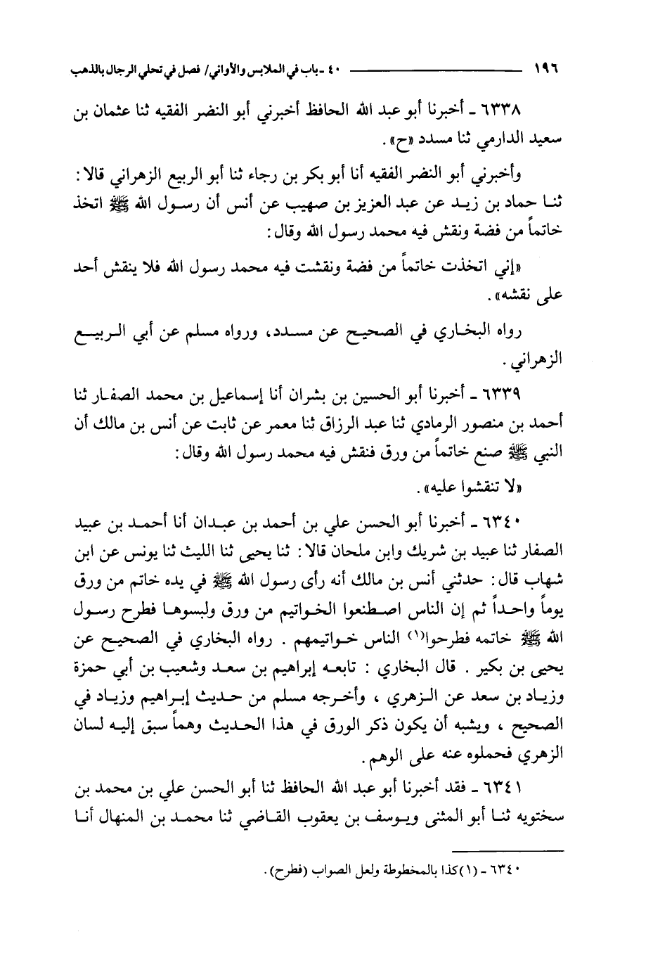 6338 - أخبرنا أبو عبد الله الحافظ أخبرني أبو النضر الفقيه ثنا عثمان بن سعيد الدارمي ثنا مسدد ح
