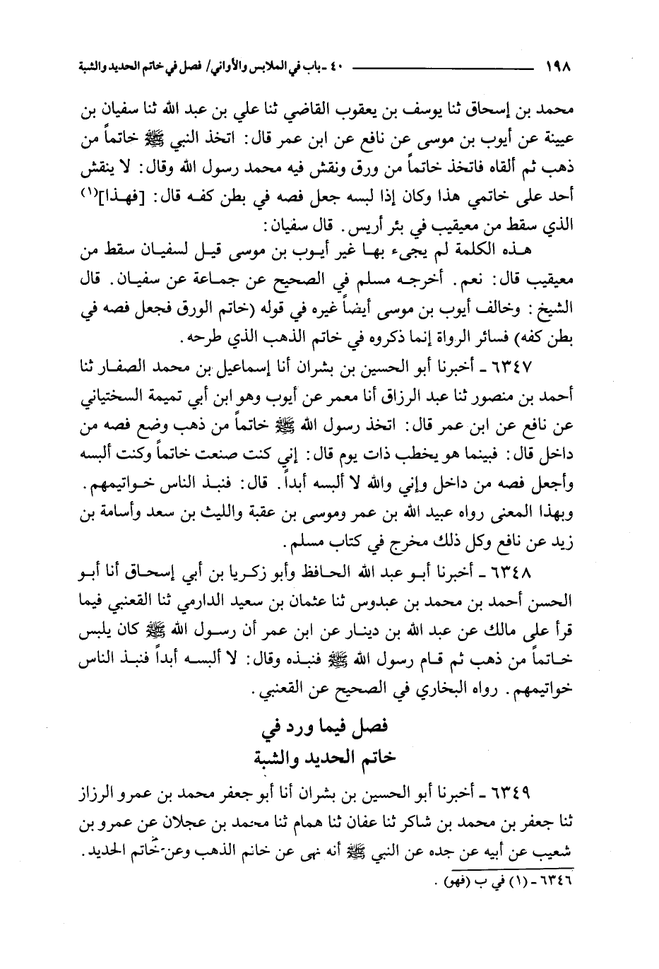 فصل فيما ورد في خاتم الحديد والشبة