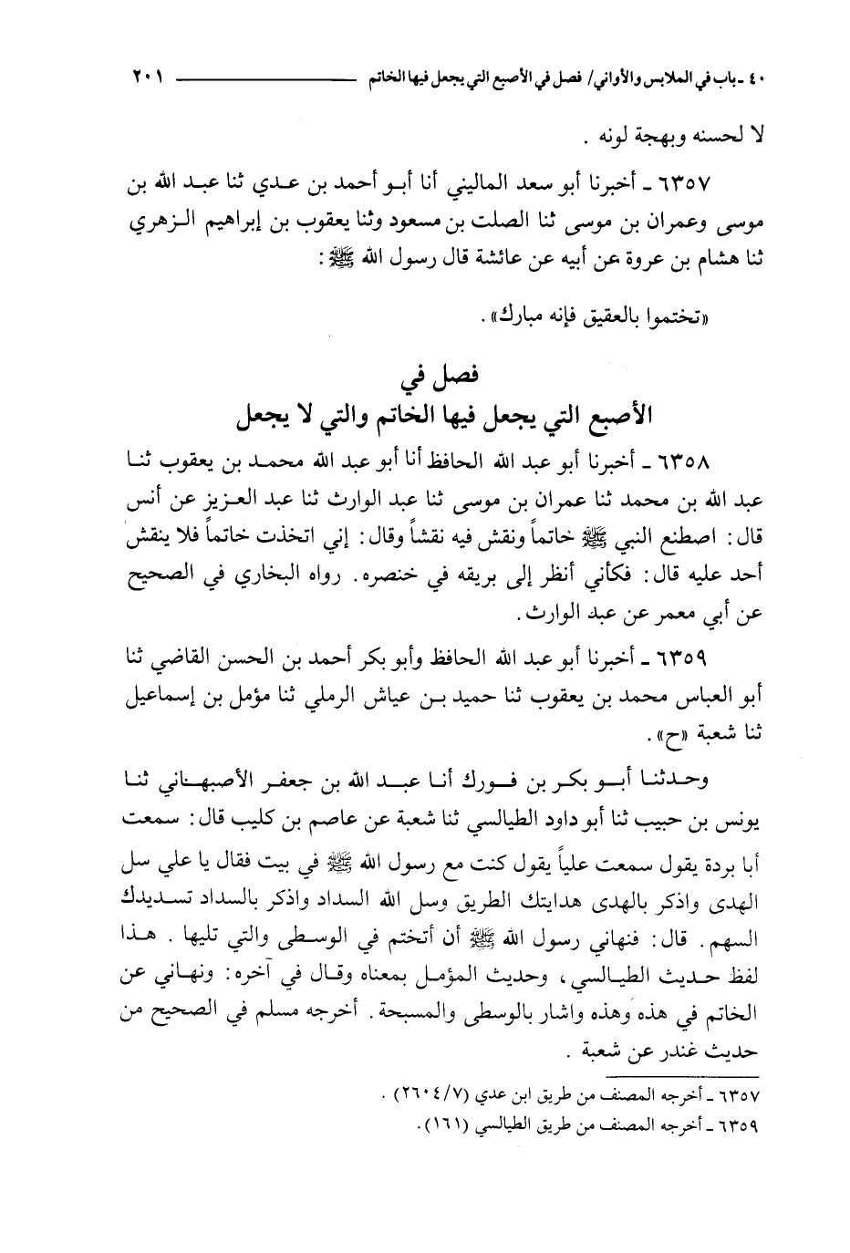 فصل في الإصبع التي يجعل فيها الخاتم والتي لا يجعل