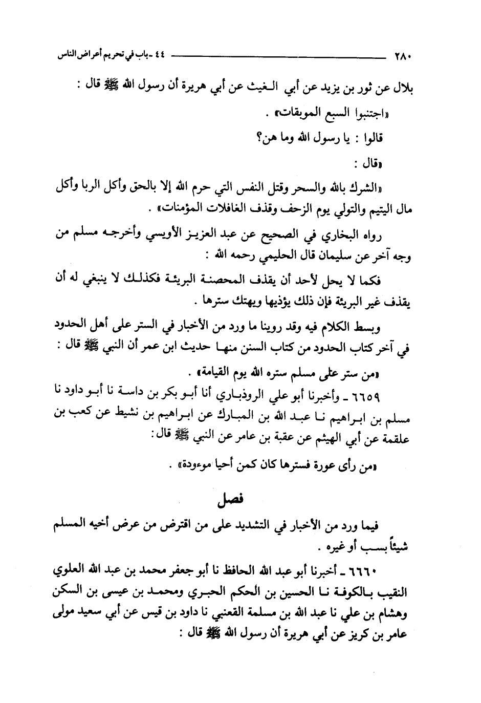 فصل ـ فيما ورد من الأخبار في التشديد على من اقترض من عرض أخيه المسلم شيئا بسب أو غيره