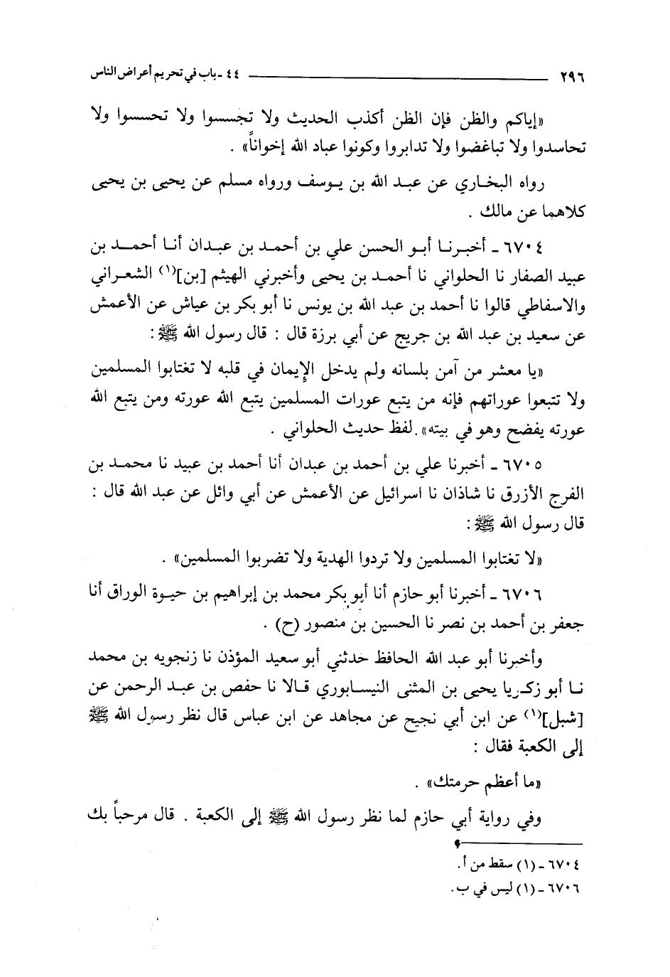 6706 - أخبرنا أبو حازم أنا أبو بكر محمد بن إبراهيم بن حيوة الوراق أنا جعفر بن أحمد بن نصر نا الحسين بن منصور ح