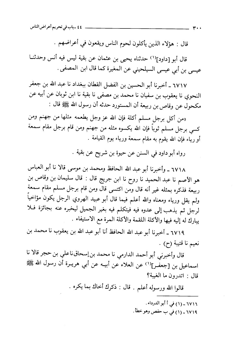 6717 - أخبرنا أبو الحسين بن الفضل القطان ببغداد نا عبد الله بن جعفر النحوي نا يعقوب بن سفيان نا محمد بن مصفى نا بقية نا ابن ثوبان عن أبيه عن مكحول عن وقاص بن ربيعة أن المستورد حدثه : أن رسول الله صلى الله عليه و سلم قال :