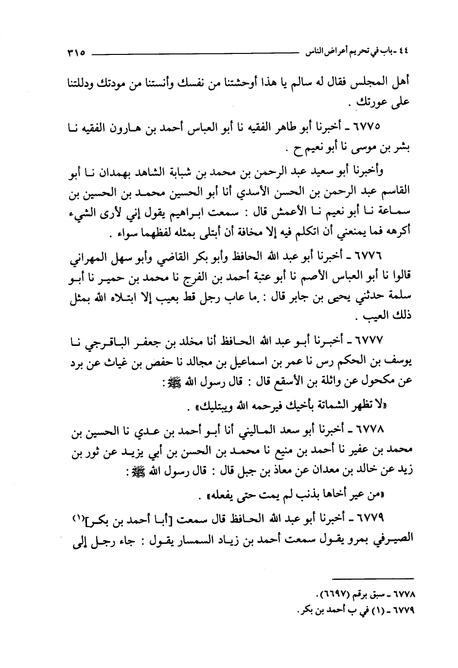 6775 - أخبرنا أبو طاهر الفقيه نا أبو العباس أحمد بن هارون الفقيه نا بشر بن موسى نا أبو نعيم ح