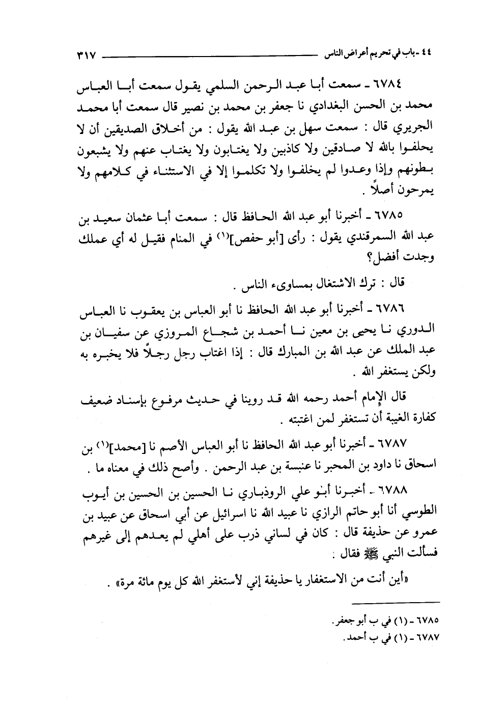 6785 - أخبرنا أبو عبد الله الحافظ قال : سمعت أبا عثمان سعيد بن عبد الله السمرقندي يقول : رأى أبو حفص في المنام فقيل له أي عملك وجدت أفضل ؟